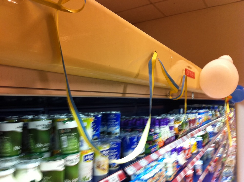 Im Kaiser’s in Beuel geht’s hoch her (nicht nur an der K??hltheke). Alaaf!