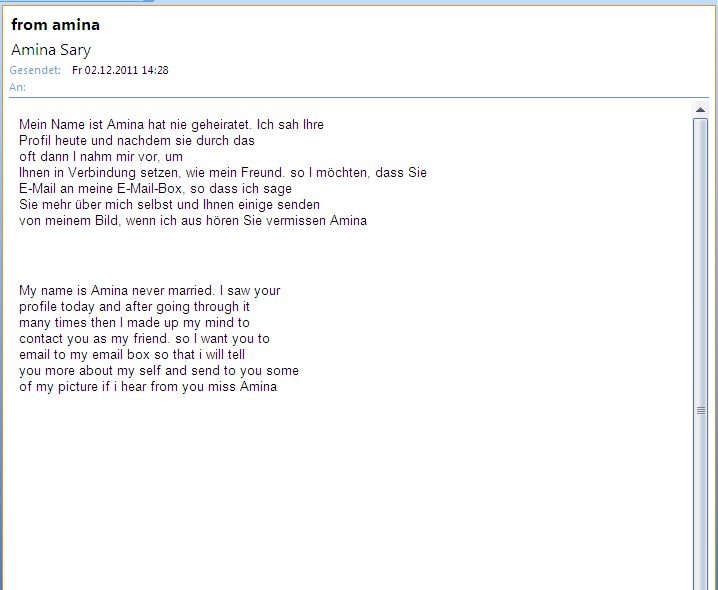 From #Amina with Love Veröffentlicht am 2. Dezember 2011 von christianohler SPAM-Mail kann doch Herzen brechen.